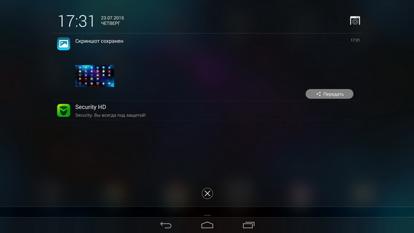Область уведомлений. Быстрых переключателей здесь нет, они располагаются в нижней панели.