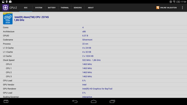 Процессор: Intel Atom Z3745 (кеш 2 Мб, 4 ядра, до 1,86 ГГц)