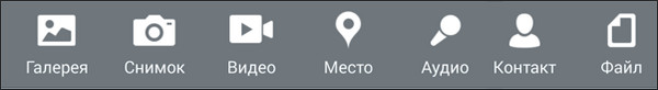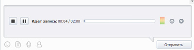 Аудио: передача голосового сообщения. При нажатии кнопки появляется простенький диктофон. Нажимаете на запись - далее идет запись.