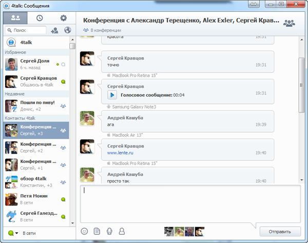 Ну, вот вроде и все основные возможности мессенджера 4talk - принципиально нового облачного мессенджера. Там есть еще немало интересных функций в каждом из клиентов, но мы это подробнее посмотрим в отдельных статьях, посвященных тонкостям работы с конкретными клиентами.