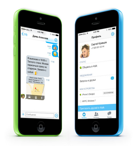 P. S. В настоящий момент существуют клиенты 4talk для Android, Windows и Mac. Клиент для iOS находится в стадии выпуска и должен появиться в течение месяца. Клиент для Windows Phone планируется к выходу в июне, также скоро появится специальная Web-версия.