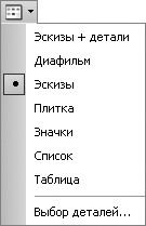 Режим просмотра. Вы можете варьировать режим просмотра почти так же, как, например, в окне просмотра файлов и папок Windows XP. Сами режимы также соответствуют вариантам просмотра в Windows XP: например, при выборе «Диафильм» снизу будут располагаться эскизы файлов, а над ними – большое развернутое изображение выбранной картинки. Однако, на мой взгляд, наиболее удобный режим просмотра – эскизы.