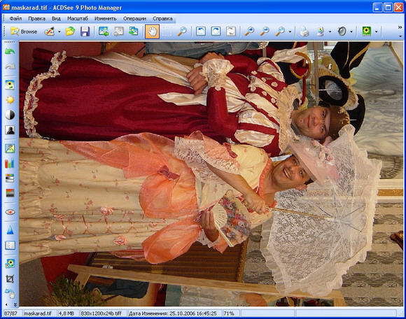 Одно из наиболее удобных свойств ACDSee – обработка группы изображений. В каких случаях это может понадобиться? Во многих. Например, вернулись вы из поездки и привезли кучу цифровых фотографий. Одну часть из них нужно развернуть по часовой стрелке, другую часть – против часовой, а кроме того, все эти изображения вам нужно уменьшить в размере, чтобы отправить через Интернет знакомым. И что, загружать каждую фотографию в редактор и там маяться? А если фотографий – сотни?!! Это сколько же времени уйдет!