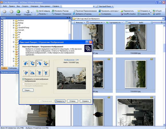 Не волнуйтесь, с помощью ACDSee вы на это потратите минут пять. Потому что эта программа позволяет применять операции редактирования (поворот, изменение размера и так далее) сразу к целой группе файлов.