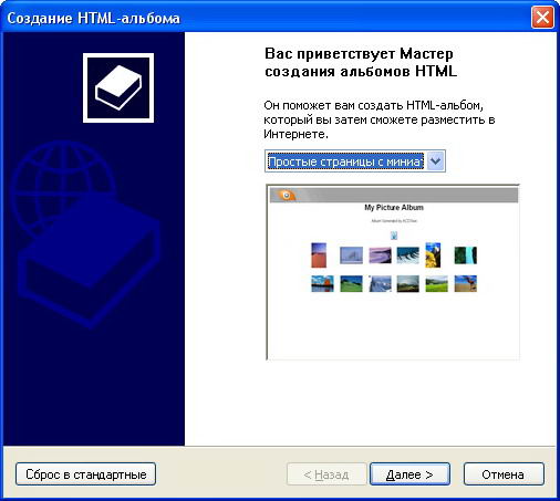 После этого нажимаете «Далее», и ACDSee начинает создавать интернетовский альбом. Если вы задали скромное количество фотографий, то альбом будет готов через несколько секунд. Но если вы хотите осчастливить Интернет несколькими тысячами фотографий... Впрочем, нет, я не могу о вас так плохо подумать...
