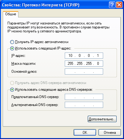 У модемов, поставляемых дилерами "Стрима", вход на программу настройки осуществляется по адресу 10.0.0.2 с логином admin и паролем zyxel. (Тут сразу нужно оговориться, что если вы купите этот модем не у дилеров "Стрима", тогда адрес для входа будет 192.168.1.1 с логином admin и паролем 1234.) Однако прежде, чем вы запустите веб-браузер для того, чтобы войти в программу настройки, нужно зайти в свойства подключения к локальной сети, там выбрать свойства протокола  TCP-IP и сделать следующие настройки: