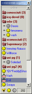 Проблема вторая - новые контакты и удаление старых контактов не будут отражаться на сервере ICQ, потому что сервер на запись пускает только своего клиента (и это вполне понятно). Впрочем, эта проблема небольшая, если вы не собираетесь с &RQ обратно переползать на ICQ (а я не собираюсь).