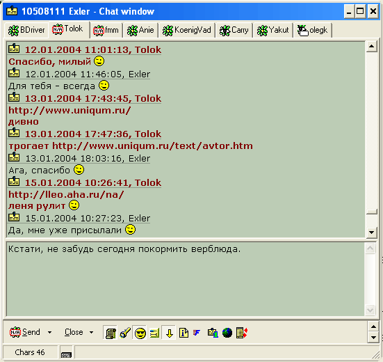 Заметьте, я не утверждаю, что это совершенный ICQ-клиент. У этой программы тоже есть свои недостатки. Но то что она мне понравилась намного больше ICQ Pro (Lite), и мне с ней намного удобнее работать - это факт.