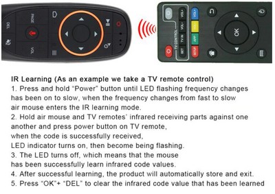 Кнопка вкл. аэромыши обучаемая. Сначала не мог включать приставку с аэромыши, пока не обучил с пульта в комплекте. Можно и от ТV обучить.