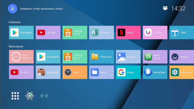 Но тут полноценный Android, так что никто не мешает поставить любую нравящуюся оболочку и использовать ее вместо оболочки Android TV. Особенно если у вас есть (или вы заказали в комплекте с этим плеером) аэромышь, с помощью которой спокойно можно управляться с полноценной оболочкой.