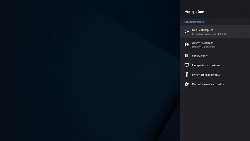 Ну и все, мы в главном окне - традиционном для оболочки Android TV.