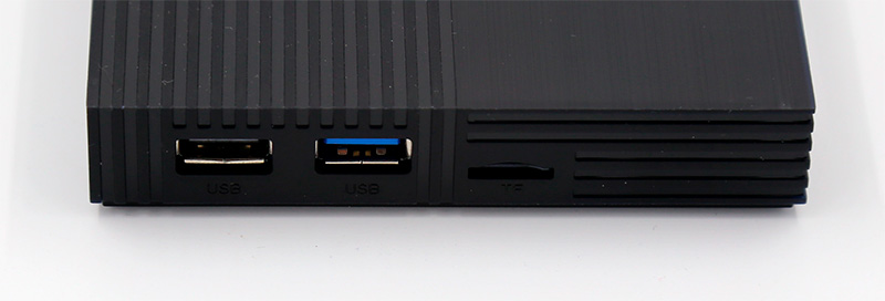 На левом торце: USB 2.0, USB 3.0 и слот под карту памяти microSD.