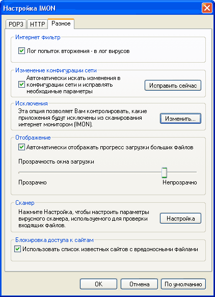 Этот монитор непременно должен быть включен! Он обеспечивает первую линию защиты при работе в Сети с интернет-страничками, файлами, загружаемыми из Интернета, а также при использовании электронной почты. Давайте посмотрим настройки этого монитора.