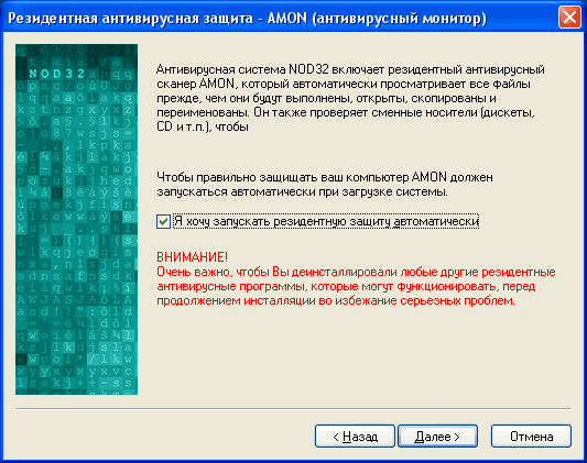 Далее следует вопрос о включении резидентного монитора: