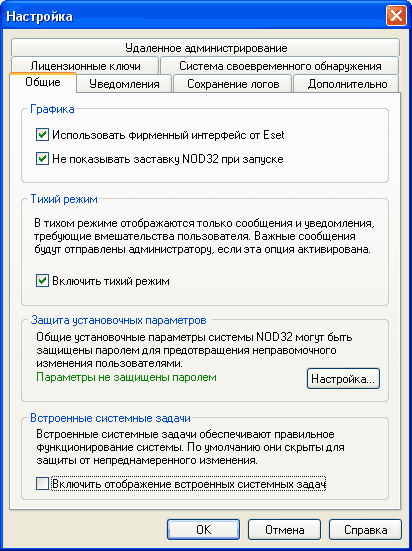Последний пункт меню в служебных программах NOD32 – «Настройки системы»:
