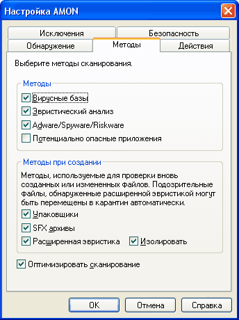 «Нет у вас методов против Кости Сапрыкина!» – говорил персонаж фильма «Место встречи изменить нельзя». В фильме против Кости Кирпича Жегловым был применен всего один метод, да и то – не слишком корректный. NOD32 предлагает аж четыре метода сканирования для антивирусного монитора, причем эти методы – весьма эффективны.