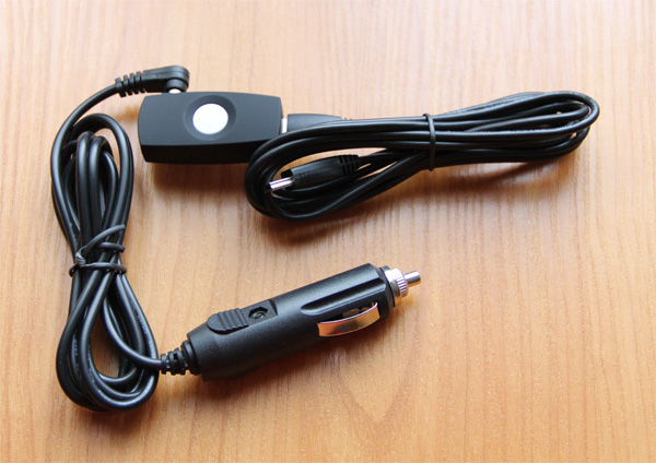 Полезная вещь, входящая в комплект, - адаптер для зарядки регистратора от прикуривателя, снабженный также прерывателем, который работает как пульт управления запись/стоп.