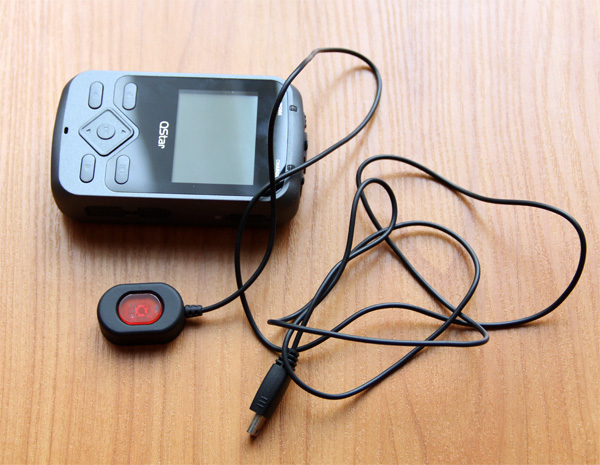 Для случая автономной работы видеорегистратора предусмотрен отдельный пульт управления со светодиодом, который помаргивает в момент записи, - это очень удобно в ситуации, когда сам видеорегистратор спрятан, например, в отделение для перчаток.