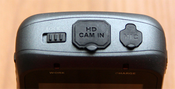 На верхнем торце - блокировка клавиш, вход видеокамеры, микрофон.