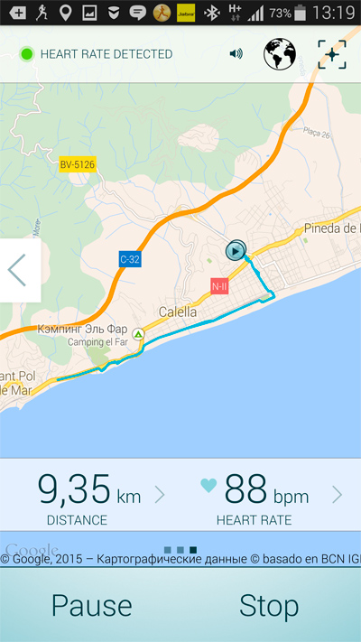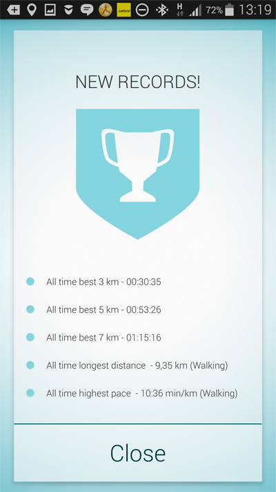 По окончании физической активности (тренировки) нажимается кнопка Stop, программа выдаст вам ваши рекорды (если они есть) и покажет конечные данные по тренировке.