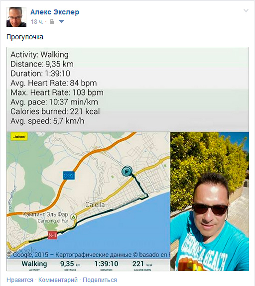 Эти данные можно расшарить в социальных сетях: например, вот так это выглядит в Facebook.