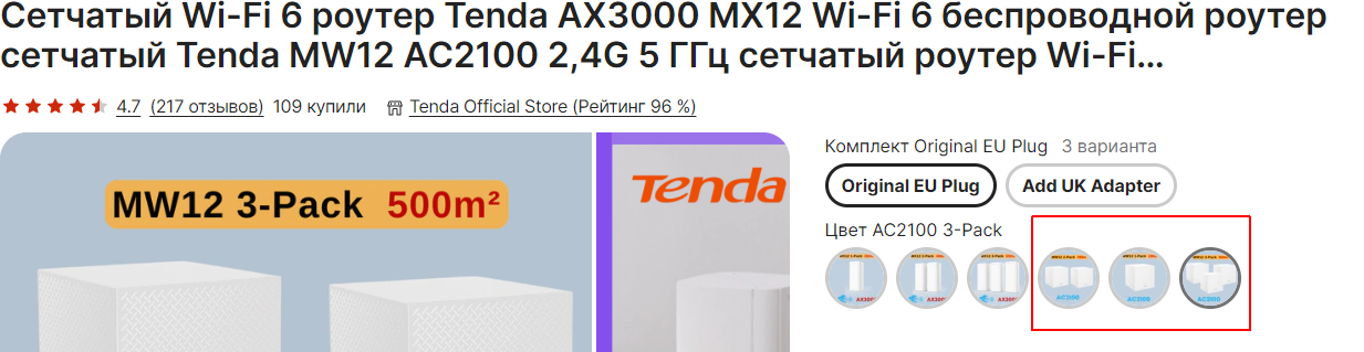 Комплекты с поддержкой Wi-Fi 6 - достаточно дорогие, топовая модель MX12 стоит €320, я же для начала хотел уложиться в €200, поэтому для изучения выбрал топовую модель с поддержкой 11AC (этого для домашней сети вполне достаточно) - трехдиапазонную Tenda Nova WiFi Mesh AC2100 MW12, которая как раз примерно €200 и стоит, и это считается бюджетным вариантом для универсальных систем подобного типа.