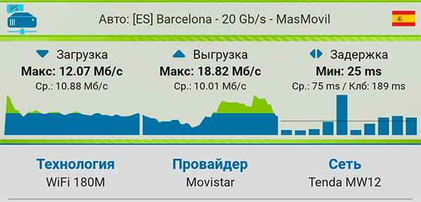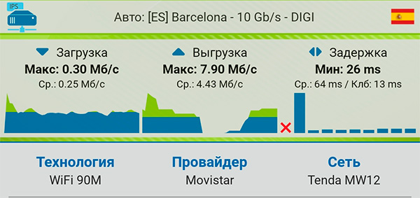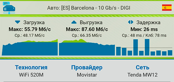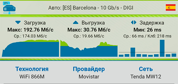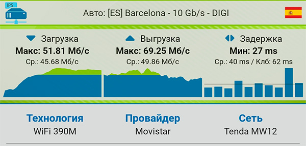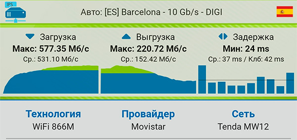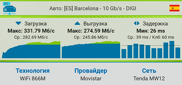 Выключил сателлит на первом этаже, замерил скорость в гостиной при подключении от сателлита на втором этаже - то есть это через перекрытие. Вполне неплохо.