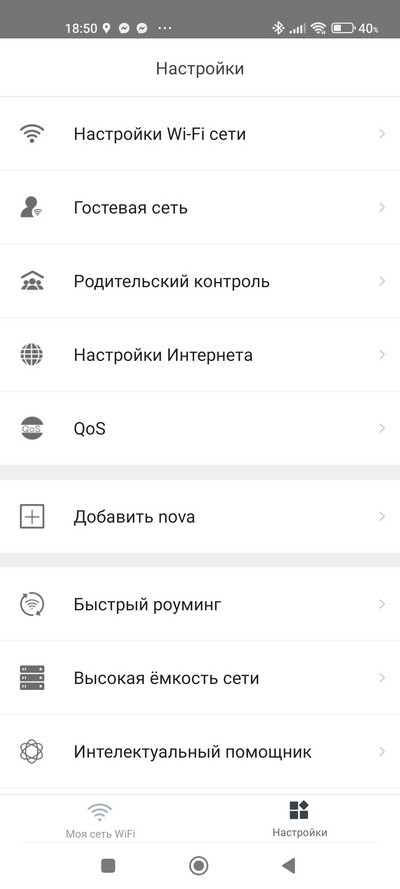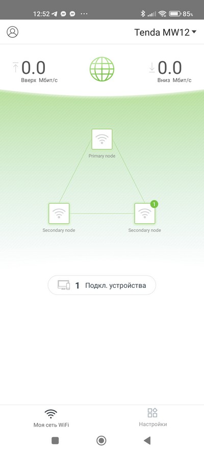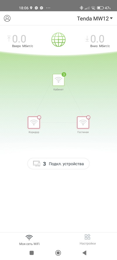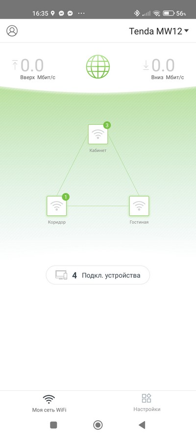 Настраивается система через приложение Tenda Wi-Fi, которое есть под Android и под iOS. (Но, впрочем, замечу, что тут можно и вовсе обойтись без каких-либо настроек: система сразу создаст работающую сеть из основного роутера и двух сателлитов.)