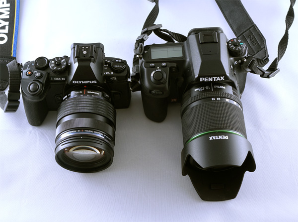 Ну и E-M1 рядом с зеркалкой Pentax K-5.