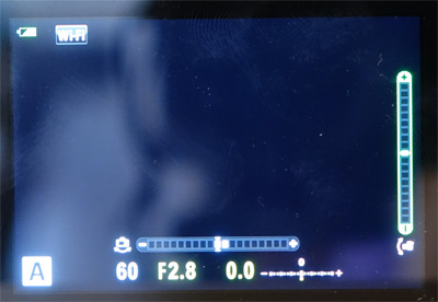 По умолчанию здесь включен режим LiveView: на экране кадр отображается так, как он должен получиться в результате съемки, то есть если есть какие-то ошибки в экспозиции, вы это сразу увидите - изображение на дисплее будет слишком темным или слишком светлым.