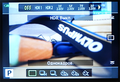 Настройка HDR и режима затвора по отдельной кнопке. Как видите, с HDR тут все очень даже богато: есть аж семь режимов съемки с различными шагами экспозиции и количеством кадров.
