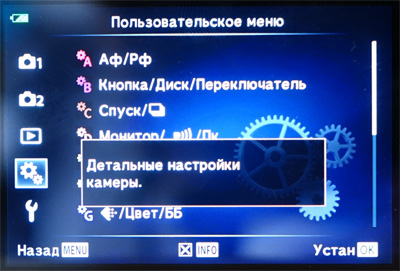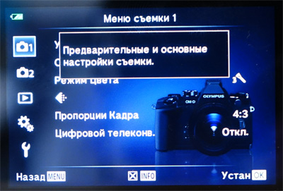 Надо сказать, что, по сравнению с E-M5, у E-M1 заметно удобнее элементы управления: как по размеру (у E-M5 некоторые элементы были безобразно маленькие), так и по разнообразию настроек.