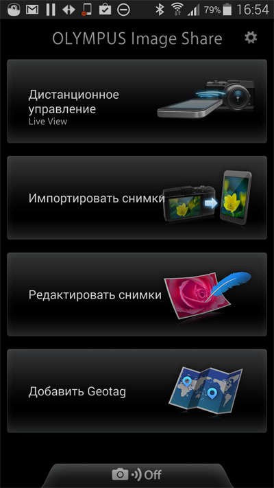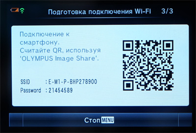 Делается это довольно просто. На смартфон скачивается и устанавливается программа OLYMPUS Image Share. Далее нужно подключиться к беспроводной сети, которую создает камера, и ввести пароль, которую камера выдает на экран.