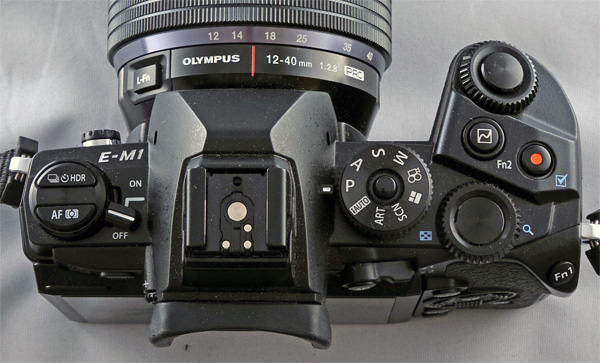 Фронтальная часть. Стиль дизайна корпуса по сравнению с E-M5 концептуально изменился не слишком сильно, но есть и принципиальные отличия.