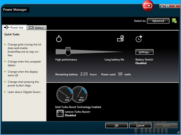 - В закладке Advanced 'Power Maqnager ' (опечатка в статье) есть несколько интересных фич! Например, можно вручную ограничить заряд батареи 70%, если ноутбук всегда подключен к сети, чтобы избегать раннего умирания батареи.