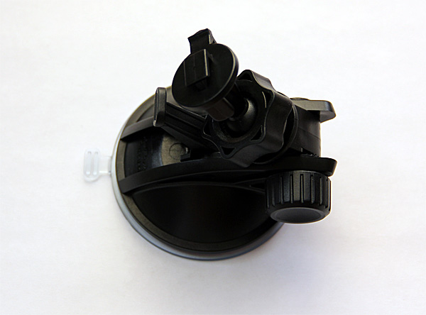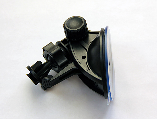 Крепление на присоске под стекло снабжено шарниром, позволяющим довольно гибко ориентировать видеорегистратор в пространстве.