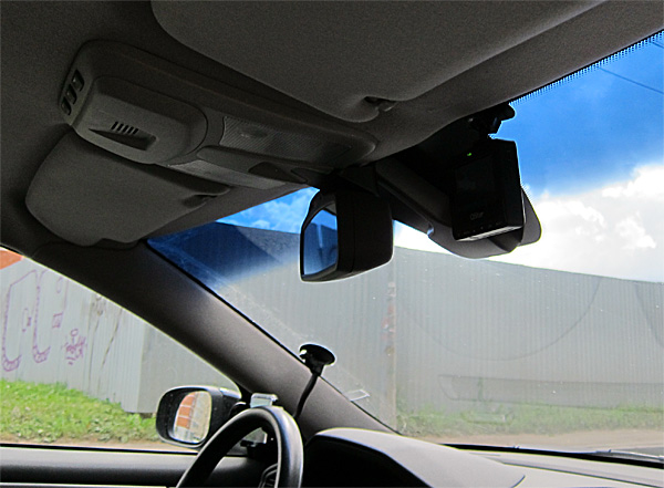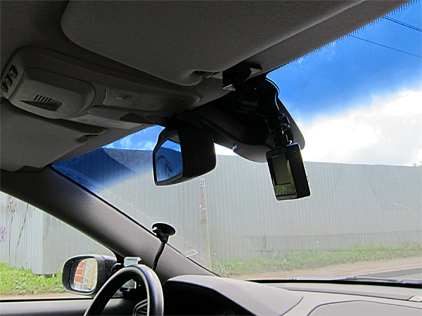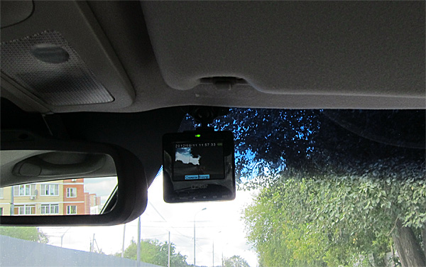 А второй вариант с липучкой приклеивается где-нибудь под потолок за зеркалом заднего вида, и тогда видеорегистратор практически не виден со стороны.