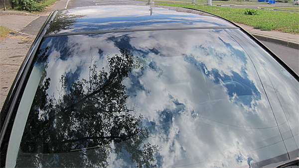 На фотографии стекло бликует, поэтому и так ничего не видно, но на практике при таком креплении, как на иллюстрации выше, если верх ветрового стекла затонирован, то видеорегистратор можно разглядеть только где-то с 10-15 сантиметров от верха стекла.