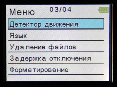 Вот все пункты меню видеорегистратора: