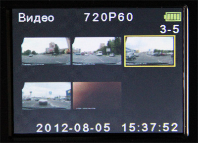 Записи выводятся в виде превьюшек, при воспроизведении показывается всякая информация о съемке.