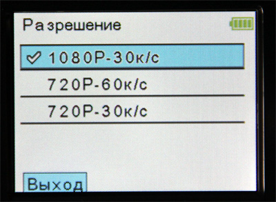 Разрешение записи FULL HD 1920×1080 (30 к/с); HD 1280×720 (60 к/с); HD 1280×720 (30 к/с)