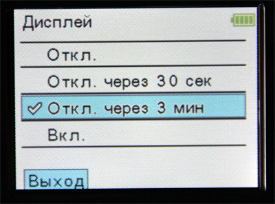 Настройка автоматического выключения дисплея.