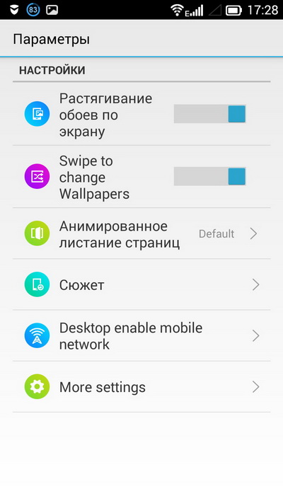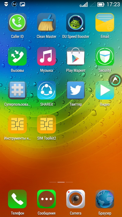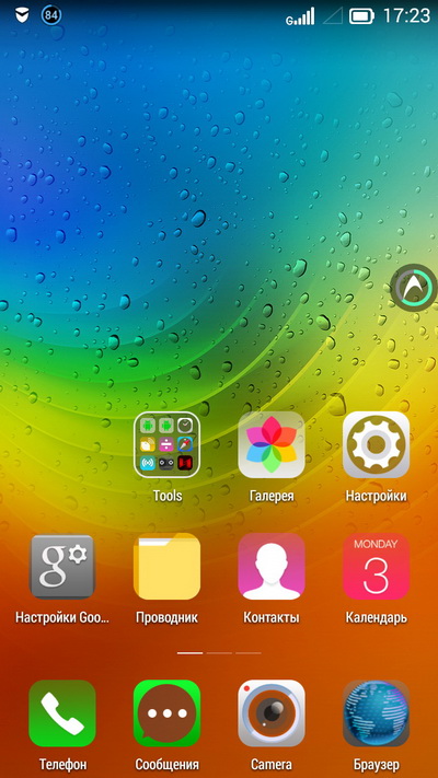 Здесь установлен Android 4.4.4 с фирменной оболочкой от Lenovo Vibe UI. Отдельного окна приложений тут не предусмотрено, иконки всех приложений расположены на десктопах.