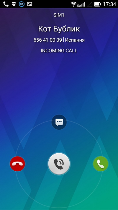 Входящий звонок, при котором почему-то не показывается фотография вызывающего абонента.
