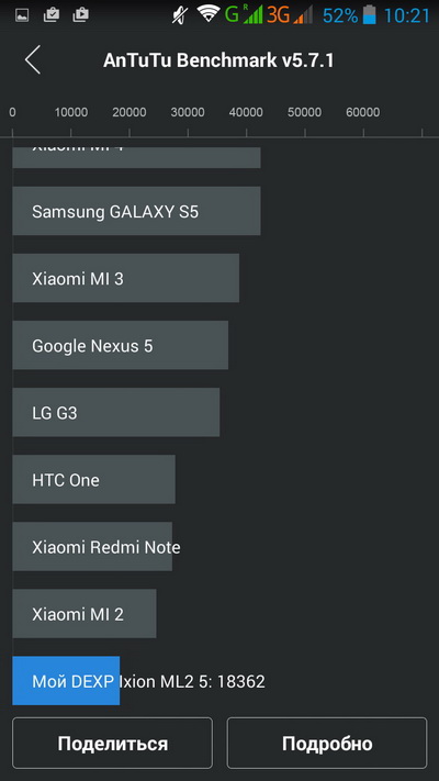 Какие выводы? В общем и целом мне смартфон очень понравился. За такие деньги получить устройство, вполне подходящее практически для всех задач, для которых обычно используют смартфоны, при этом еще и с реально емкой батареей в 5200 мА·ч, которая позволяет использовать устройство до трех дней без заряда и под хорошей нагрузкой, - это, на мой взгляд, просто здорово. Да, тот же Lenovo P70 имеет более современный чипсет, но у него менее емкая батарея (4000 мА·ч), да и стоит P70 аж 19 тысяч, а DEXP Ixion ML2 5" - 8990 рублей.