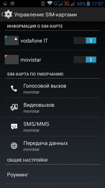 Управление двумя сим-картами.
