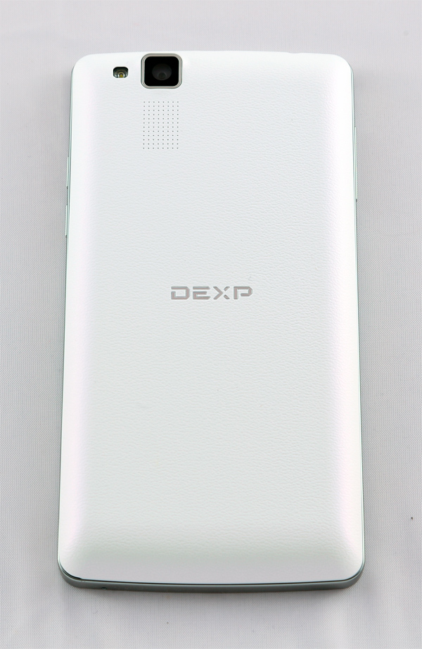 Задняя крышка: белый пластик со штамповкой, имитирующей текстуру кожи, который и не заляпывается, и в руке лежит очень неплохо. Динамик расположен прямо под глазком камеры.