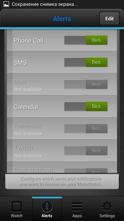 Еще телефон умеет выводить на дисплей информацию о входящем звонке и SMS - это настраивается в программе. Также там в ближайших планах компании информация о поступивших сообщениях по e-mail и уведомления из социальных сетей, но пока это не реализовано.