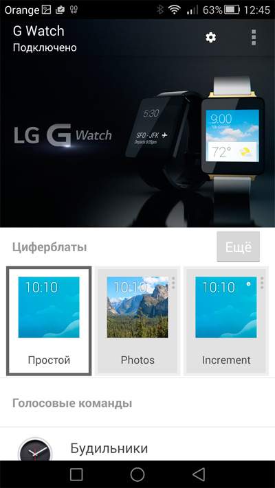 Тап по циферблату вызывает пиктограммы меню, где автоматически активируется голосовой сервис Google. Также этот голосовой сервис без всякого тапа вызывается командой "ОК, Google".