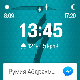 Все приложения могут выдавать свои уведомления на циферблате: чтобы раскрыть приложение, уведомление нужно потянуть вверх.